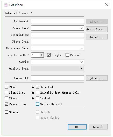 Enter desired piece information, then select [Plan Clone] (or Piece Clone) item;