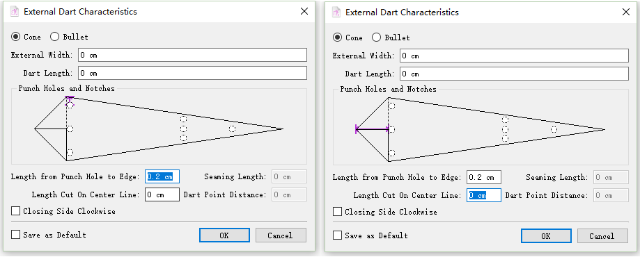 We sort out the darts in the dialog box: Cone, Bullet, Double-pointed Dart, make it more simple to check; the corresponding position of the dart will be highlighted in purple when enter the value.