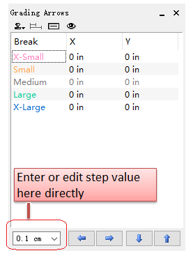 Without specifying any size, input the step value to dX/dY, the system will treat it as the step for larger size by default. Besides, it will recognize the direction and get the step value for the smaller size automatically, and finish grading at once: