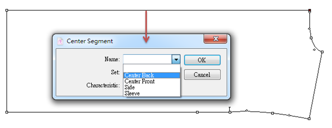ดังที่แสดงในภาพด้านบน ให้ใช้ ชายเสื้อ เป็นตัวอย่างเพื่อแสดงวิธีการสร้างสเปก: