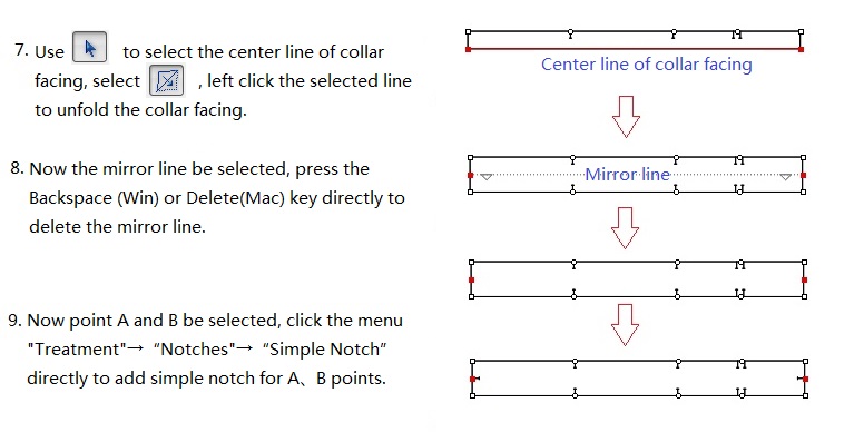 เพื่อเลือกเส้นคอเสื้อบนชิ้นงานด้านหลัง เลือก