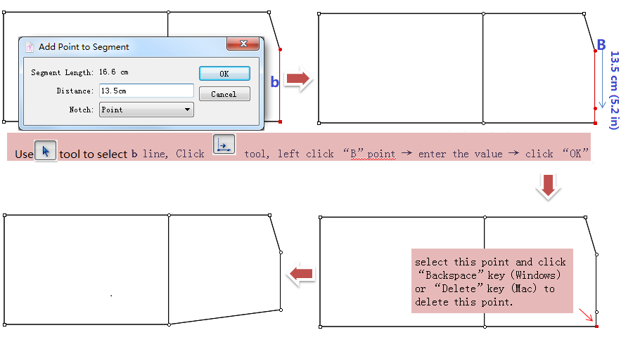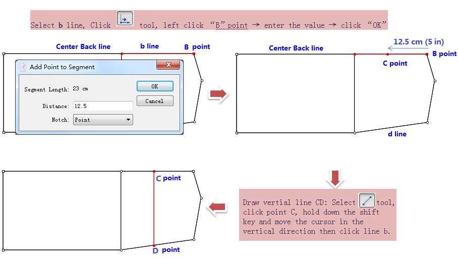 เครื่องมือ เพิ่มจุดบนส่วน เพื่อวาดจุดความกว้างคอ: