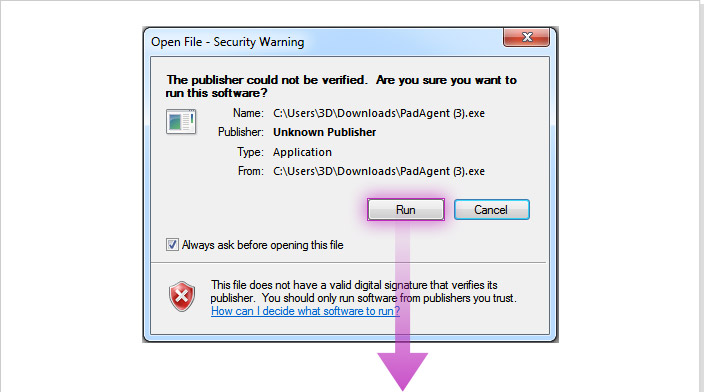 3.4. ทำการติดตั้ง PadAgent ที่ดาวน์โหลดมาบนคอมพิวเตอร์ของคุณ