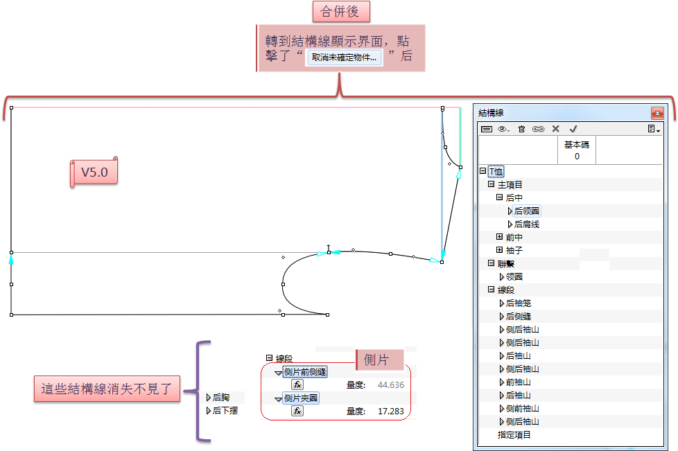 當分別設有結構線的N塊樣片, 被合併成一塊樣片後, V5.0版本則會丟失部分結構線, V6.0則優化加強此方面的功能,保留合併樣片的結構線
