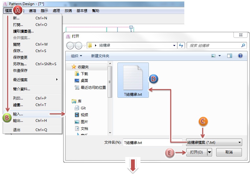 打開存有的結構線組別 (也就是打開之前儲存好的結構線組別 .frl 文件), 應用於相類似的紙樣上.